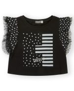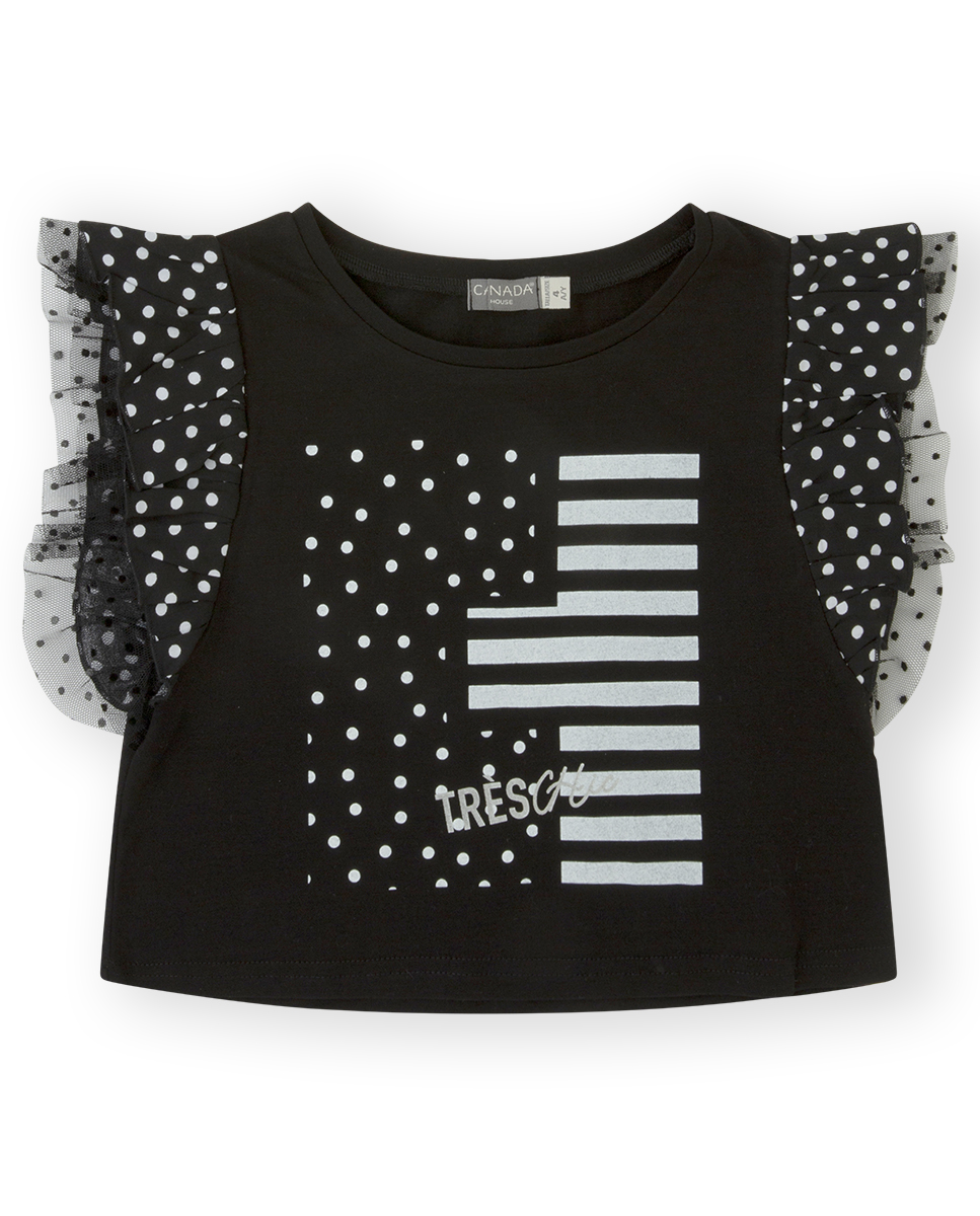 Αρχική Μπλουζάκια καλοκαιρινά ΜΠΛΟΥΖΑ ΜΑΥΡΗ ΛΕΥΚΗ ΠΟΥΑ ΜΕ ΒΟΛΑΝ ΚΑΙ ΤΟΥΛΙ ΣΤΑ ΜΑΝΙΚΙΑ