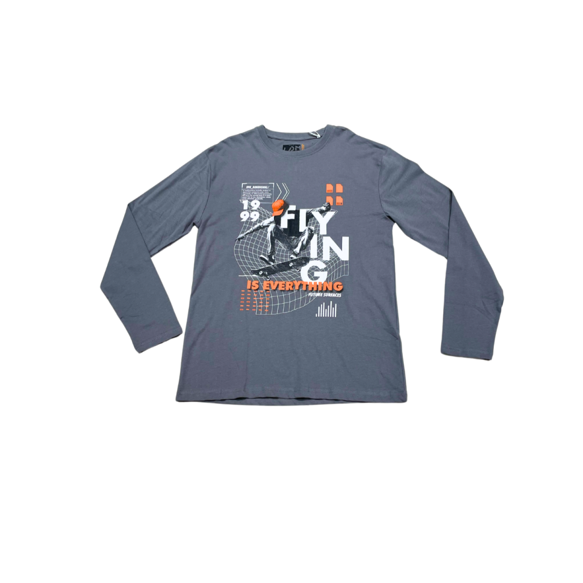 ΜΠΛΟΥΖΑ ΜΑΚΡΥΜΑΝΙΚΗ Τ-SHIRT ΓΚΡΙ ΜΕ ΣΧΕΔΙΟ